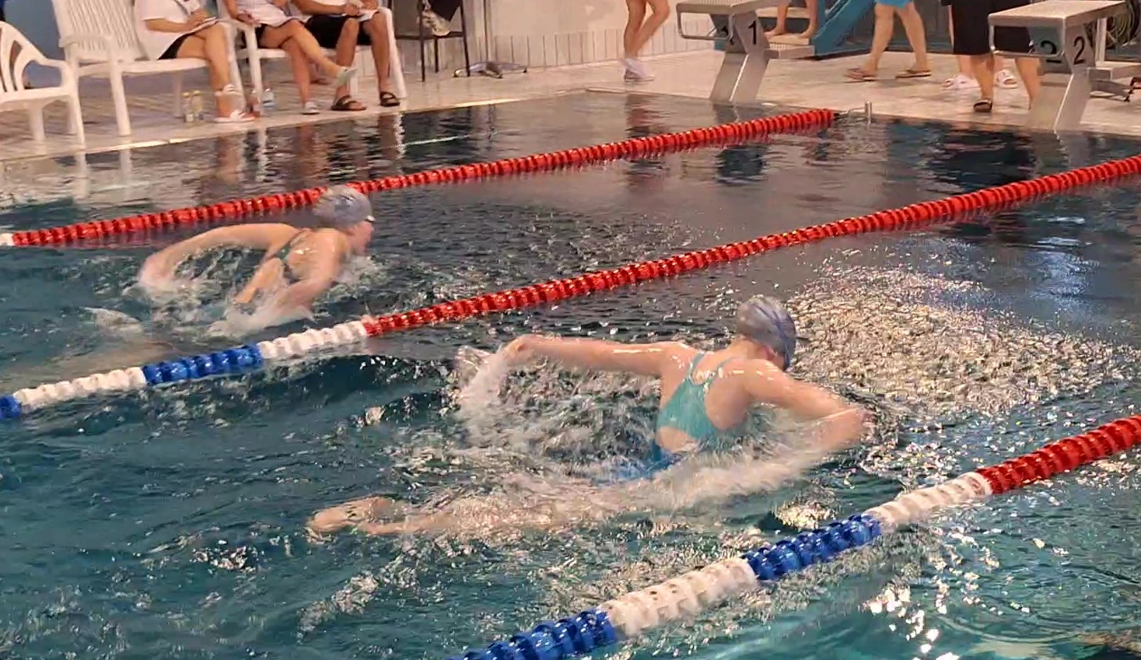 Am Vormittag waren die Disziplinen Brust- und Schmetterlingsschwimmen, sowie die Lagenstaffel auf dem Programm. Hier überzeugten die jüngsten Schwimmerinnen mit Klara Dingwerth (Jg. 2017) und Esther Schlitt (2016) auf den ersten Plätzen. Frieda Hach (2016) konnte ihre Bestzeit über 5 Sekunden verbessern und wurde mit dem dritten Platz belohnt. Aber auch die großen mit Emma Bieda (2013) und Marlena Fischer (2012) schwammen jeweils auf Platz 3, sowie Mara Huster (2011) auf Platz 1.