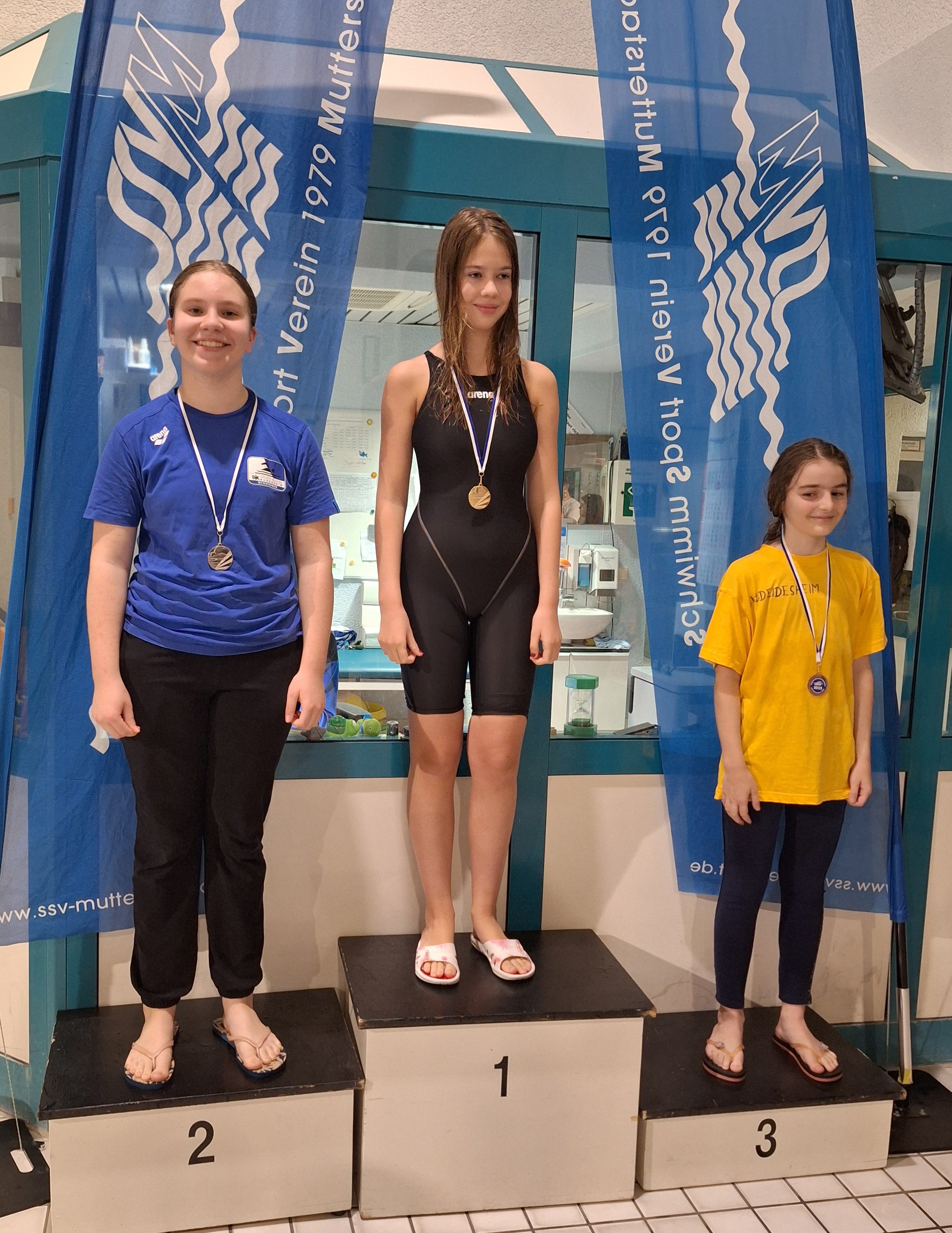 Zum ersten Mal bei einen Schwimm-Wettkampf konnten sowohl die weibliche und als auch die männliche Budenheimer Mannschaft bei der Lagen-Staffel auf dem Treppchen mit der Bronze-Medaille stehen.